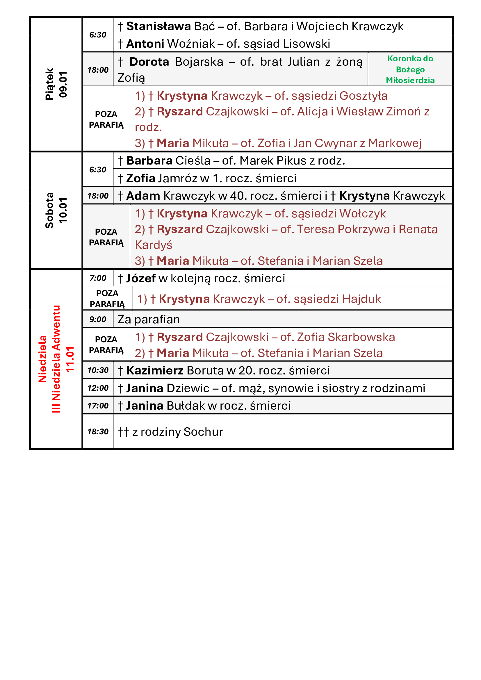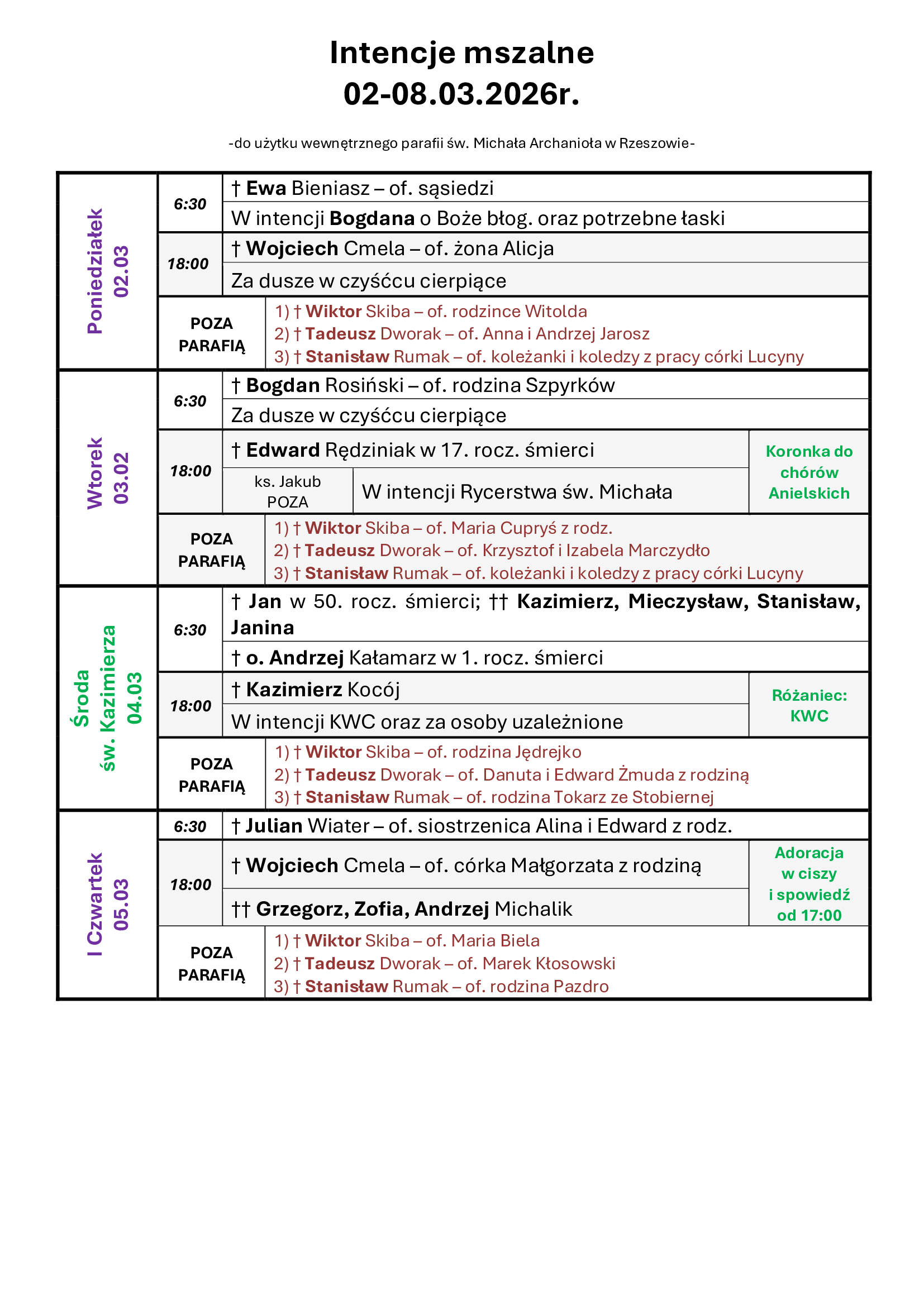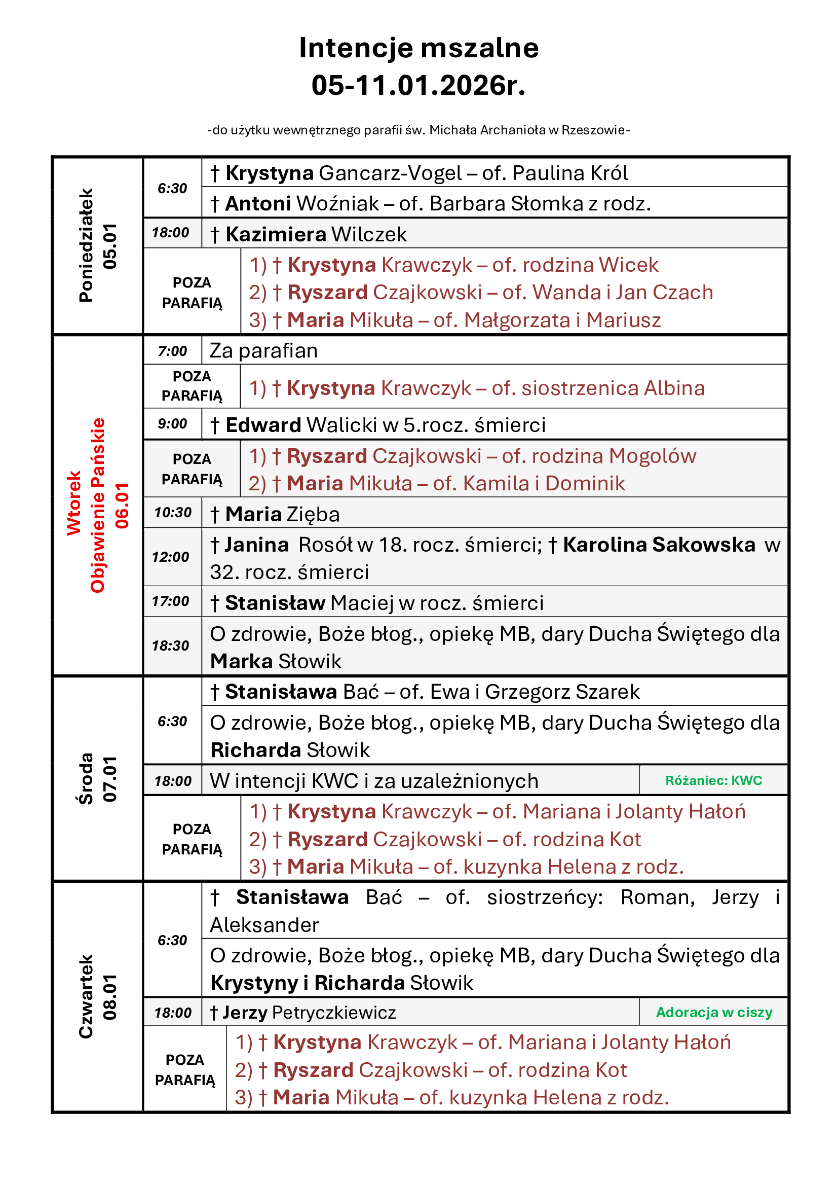 INTENCJE MSZY ŚWIĘTYCH W PARAFII