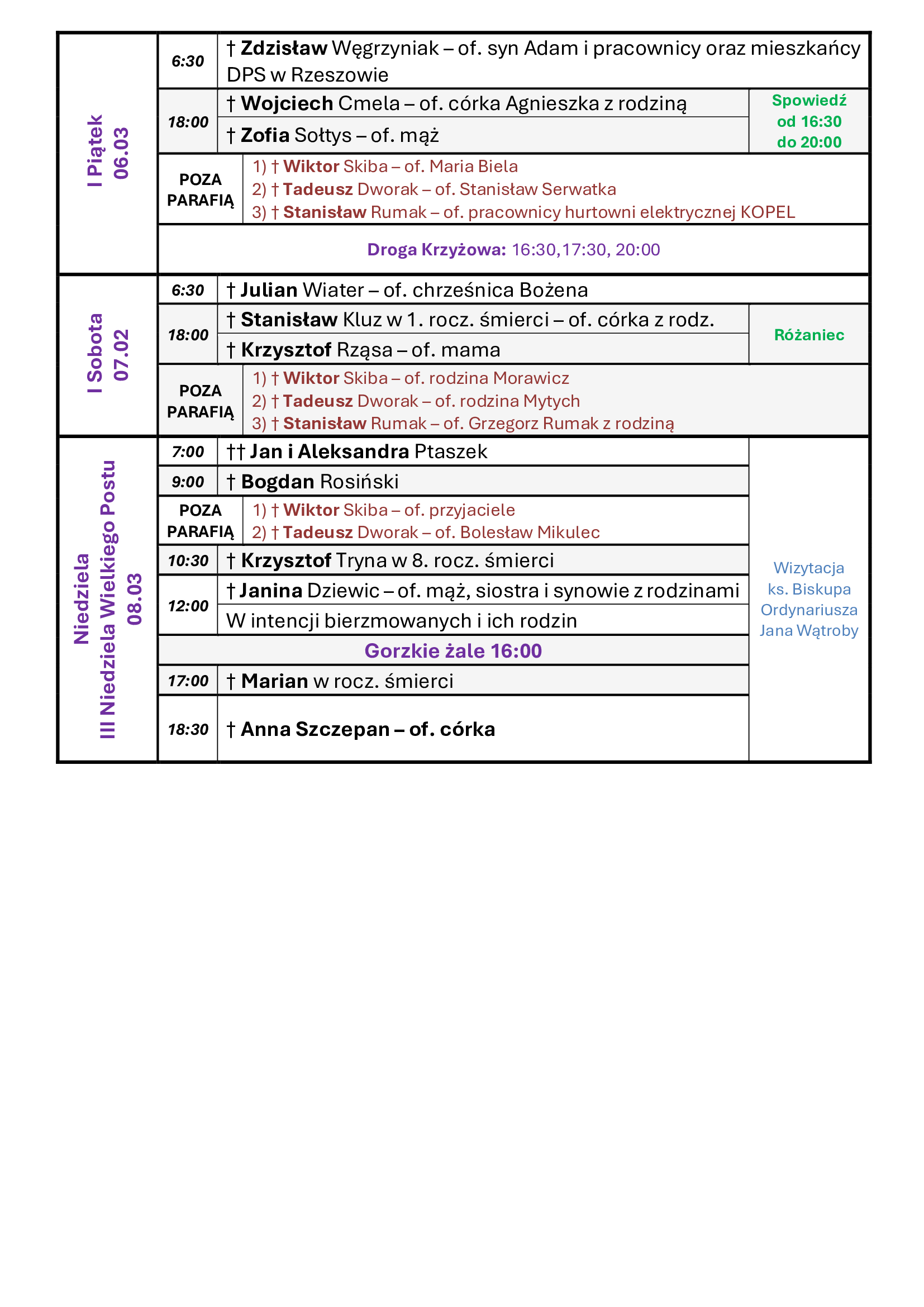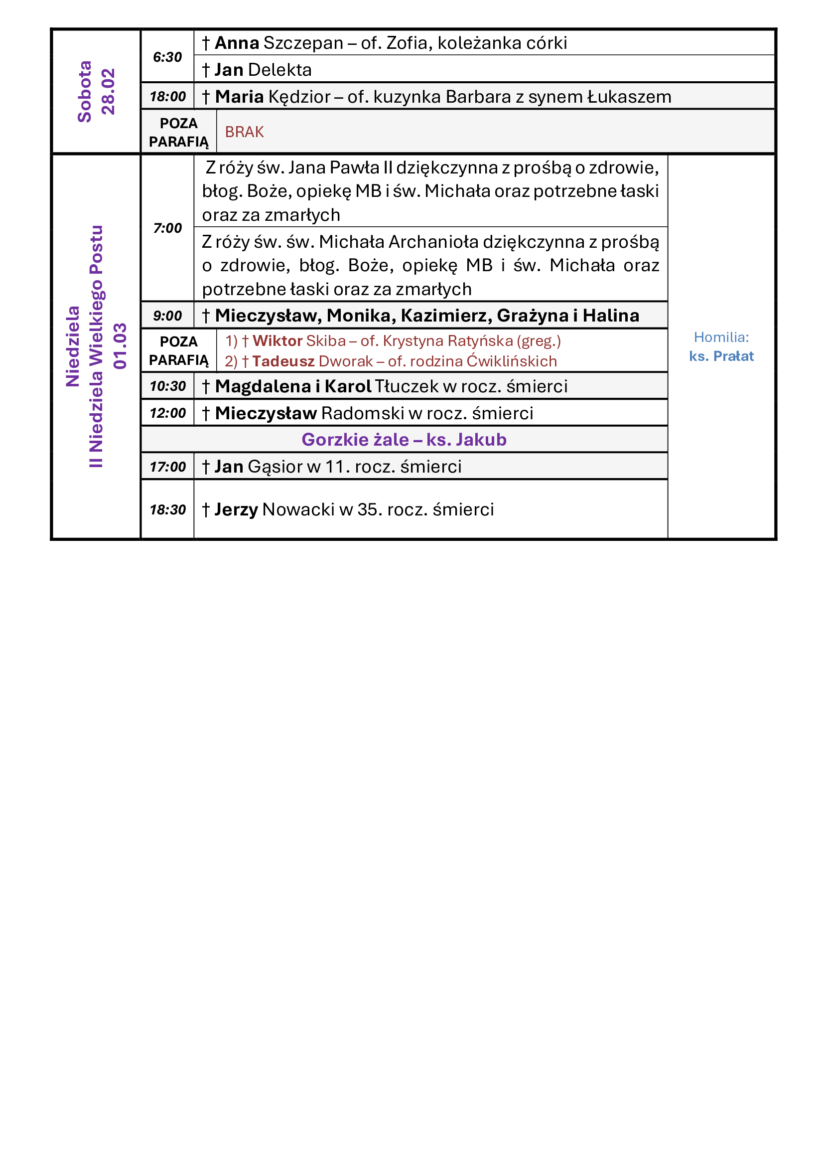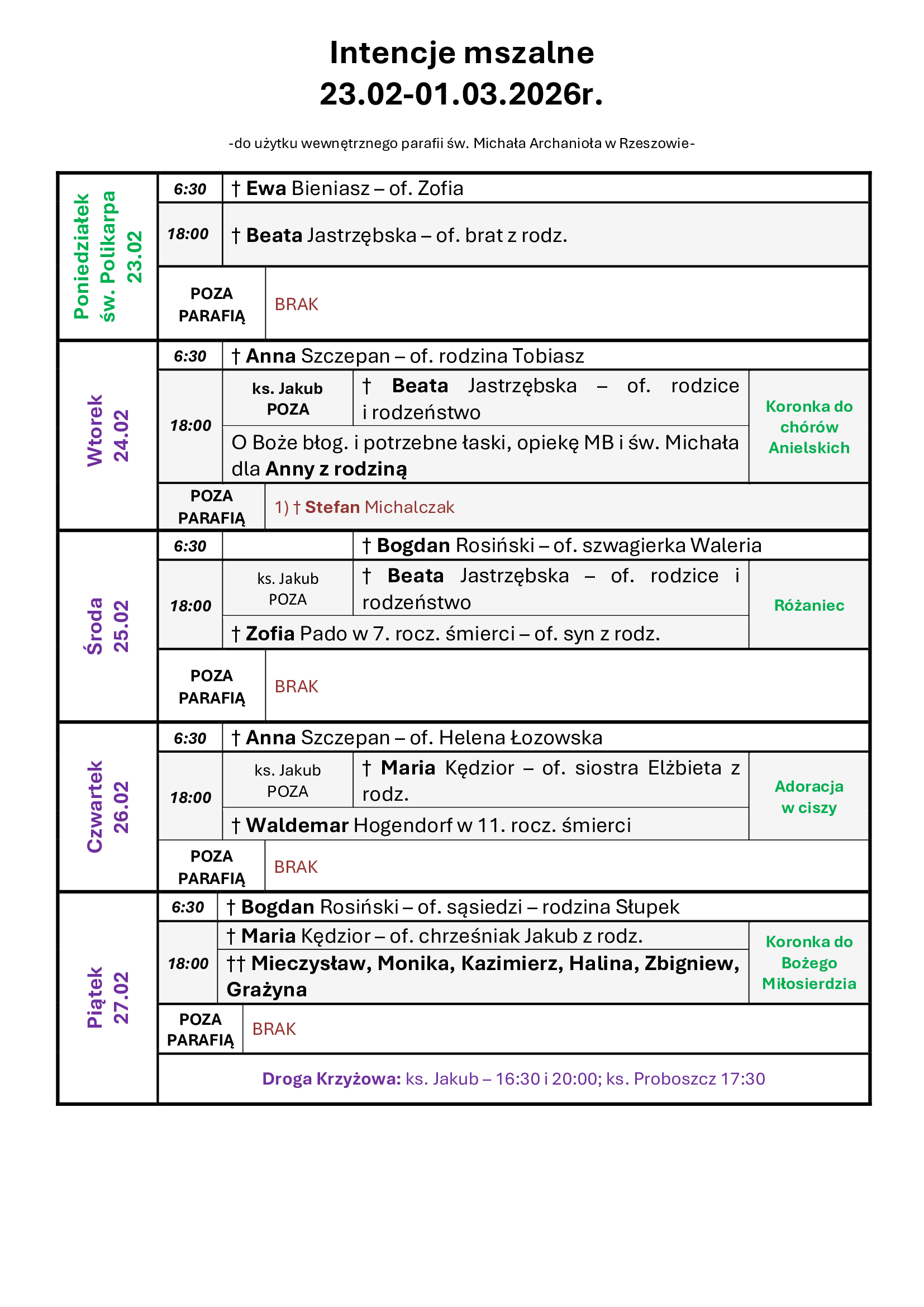 INTENCJE MSZY ŚWIĘTYCH W PARAFII