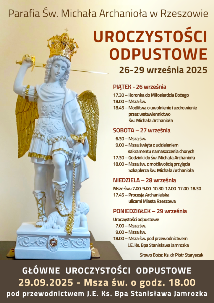 18.00 – Msza św. z możliwością przyjęcia Szkaplerza św. Michała Archanioła