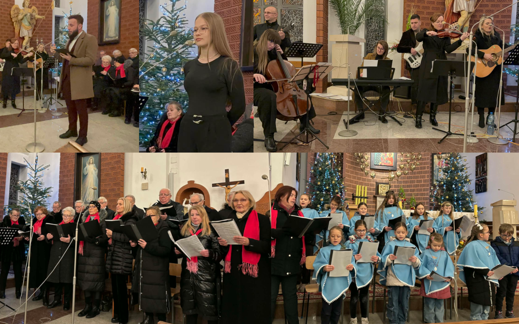 Na scenie zaprezentowali się: parafialny chór Michael, schola dziecięca, zespół „Muzyczni Przyjaciele” a także soliści i inni wykonawcy, którzy z wielkim zaangażowaniem i pasją podzielili się swoim talentem. Bogaty i niezwykle ciekawy repertuar obejmował zarówno dobrze znane, tradycyjne kolędy, jak i mniej popularne utwory bożonarodzeniowe, niosące głębokie przesłanie wiary i nadziei.